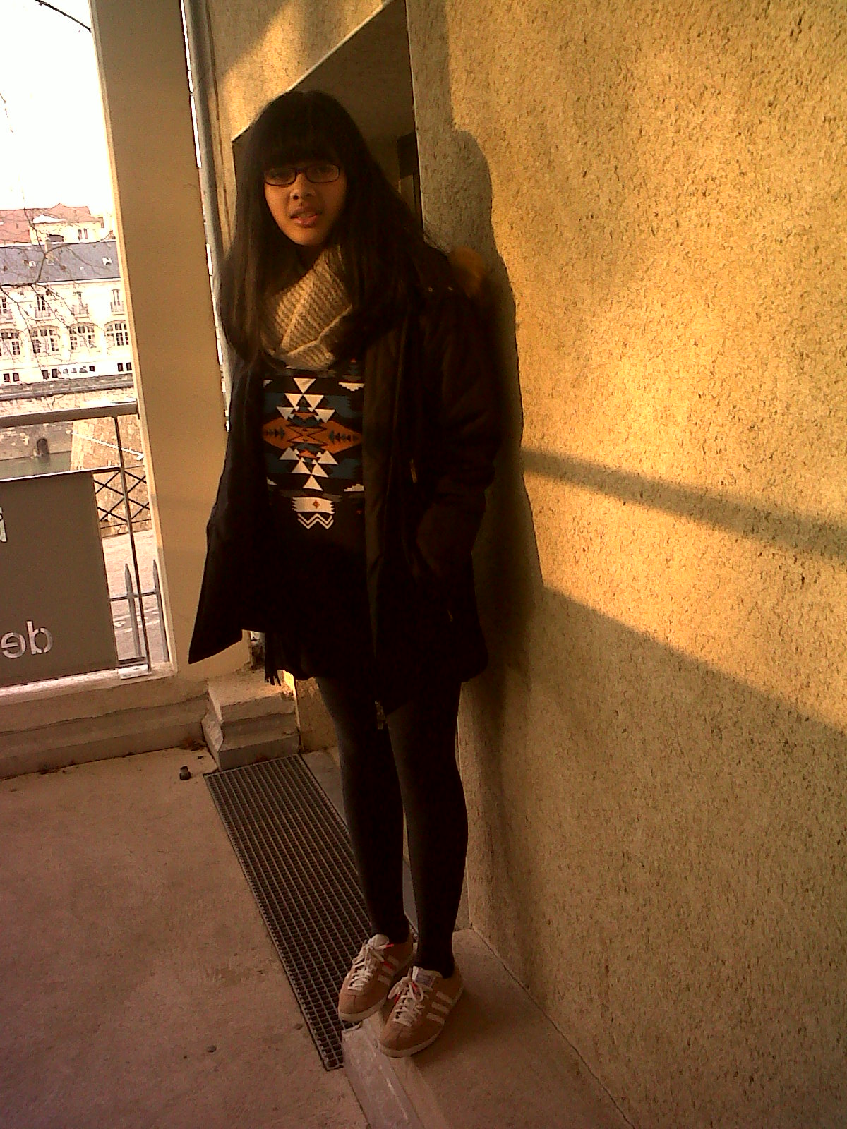 Voici deux de mes tenues de la semaine qui vient de passer, on peut y voir, mes adidas gazelle ORIGINAL (beige & que j'aime plus que tout haha), mes vans era bleues (très similaire à celle que je voulais, en plus le plateau est bien haut, voir article d'avant), mon sac à frange!!!, ma nouvelle chemise à carreau, ma jupe et le pull offert par crazy gaijin ! Thanks pour les pictures Crazy Gaijin ! Ah oui, j'acheté une parka verte, presque la même que Miss Gaijin, en plus courte, demain, je posterai une pic ;)